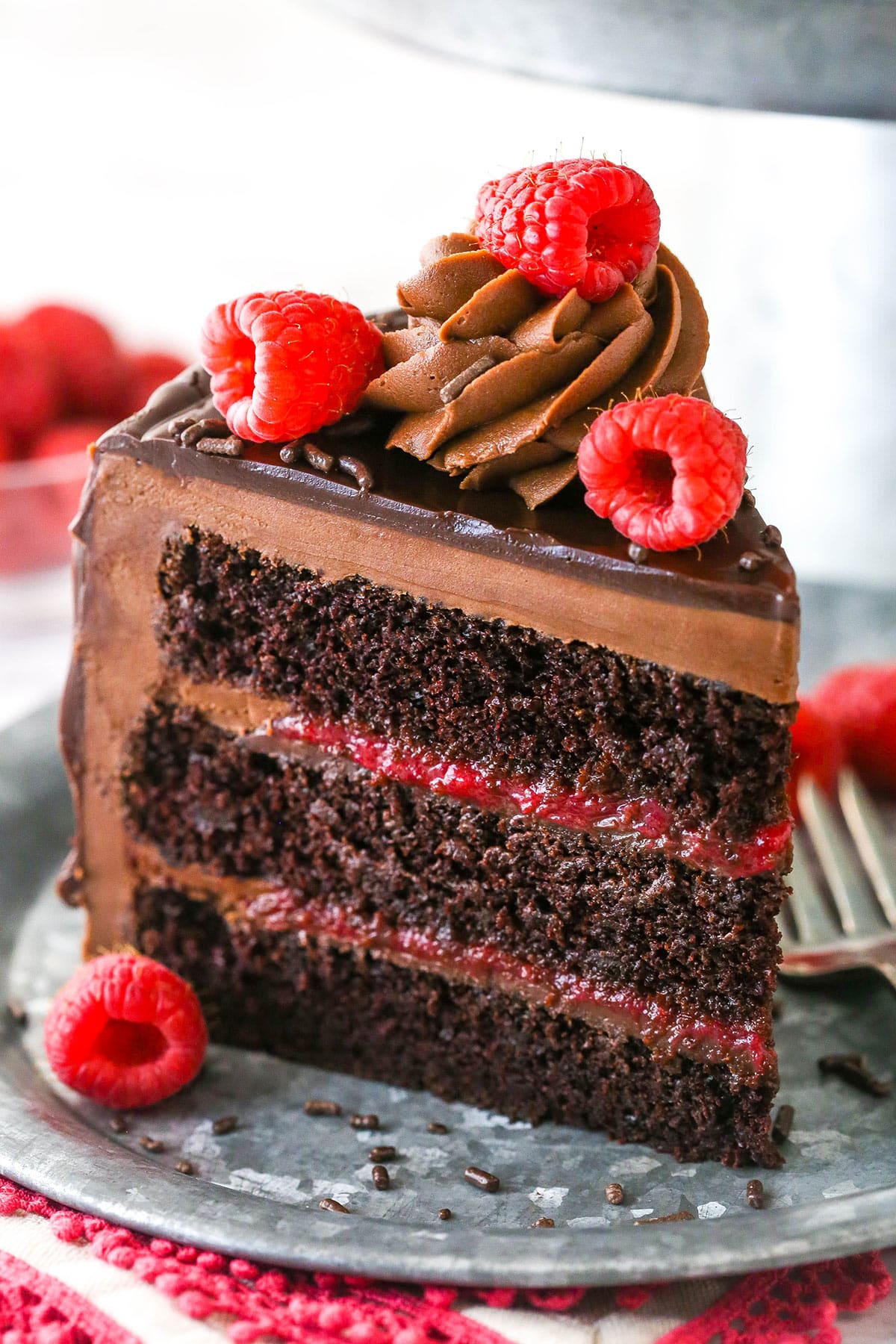 - Make ganache by pouring hot cream over chocolate chips, whisk until smooth. Level cake layers, layer with raspberry filling, and cover with frosting and ganache. Decorate as desired.