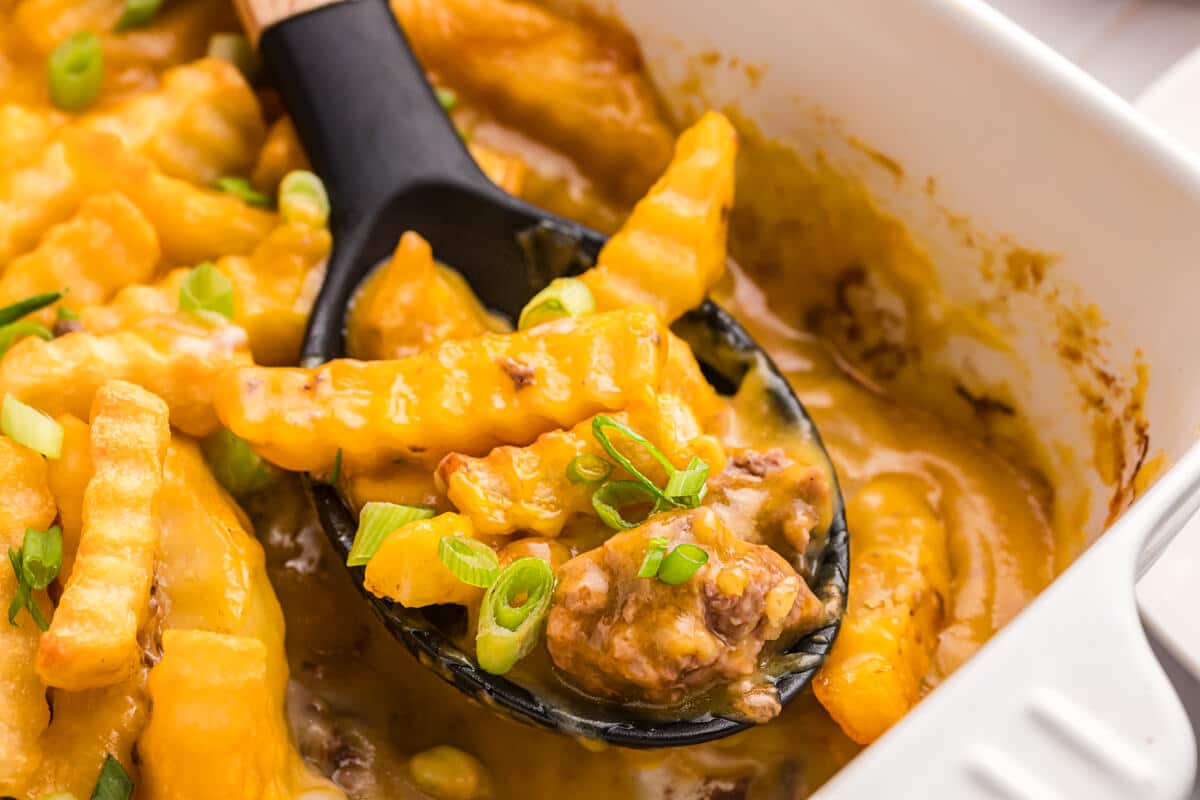 This casserole is best served immediately for optimal crispiness of the french fries.
