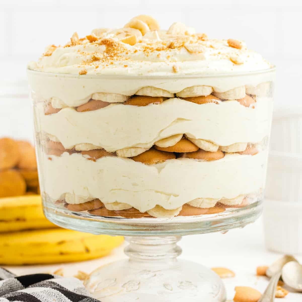 - In a serving dish, layer 1/3 of vanilla wafers, followed by 1.5 cups of sliced bananas, then 1/3 of pudding mixture.