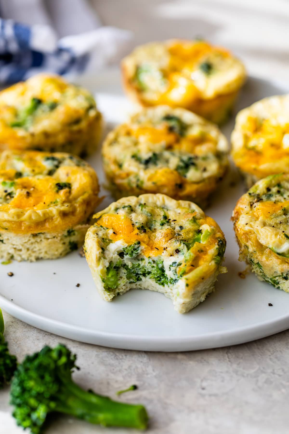 - Generously spray a standard 12-cup muffin tin with olive oil spray. Spoon the broccoli mixture evenly into the muffin cups.