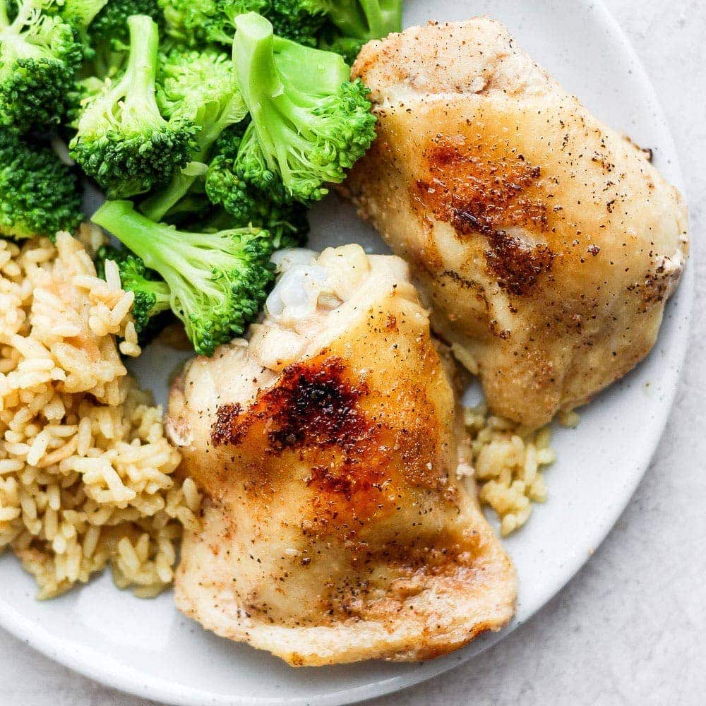 - Next, remove chicken thighs from the package and remove excess moisture from the chicken thighs by patting them with a paper towel.