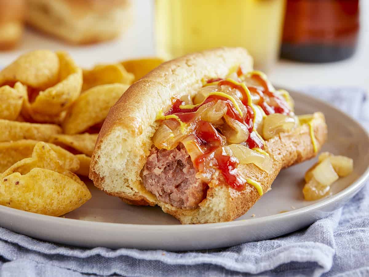 - In the same pan you softened the onions in, brown brats over medium heat for 3 minutes on each side (brats will not be fully cooked).