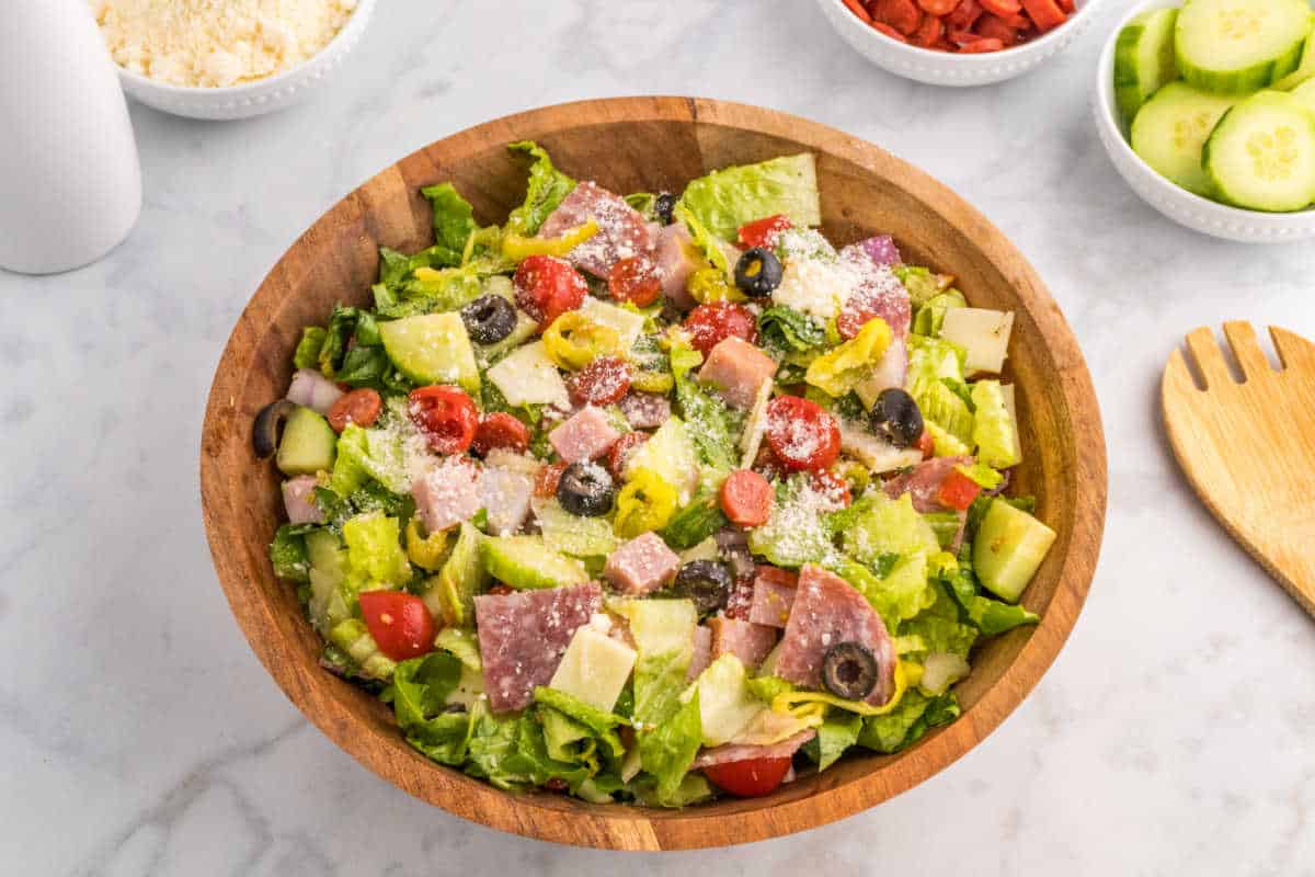 - Divide the Italian Sub Salad among serving plates. It's ready to be enjoyed as a satisfying meal or a side dish.