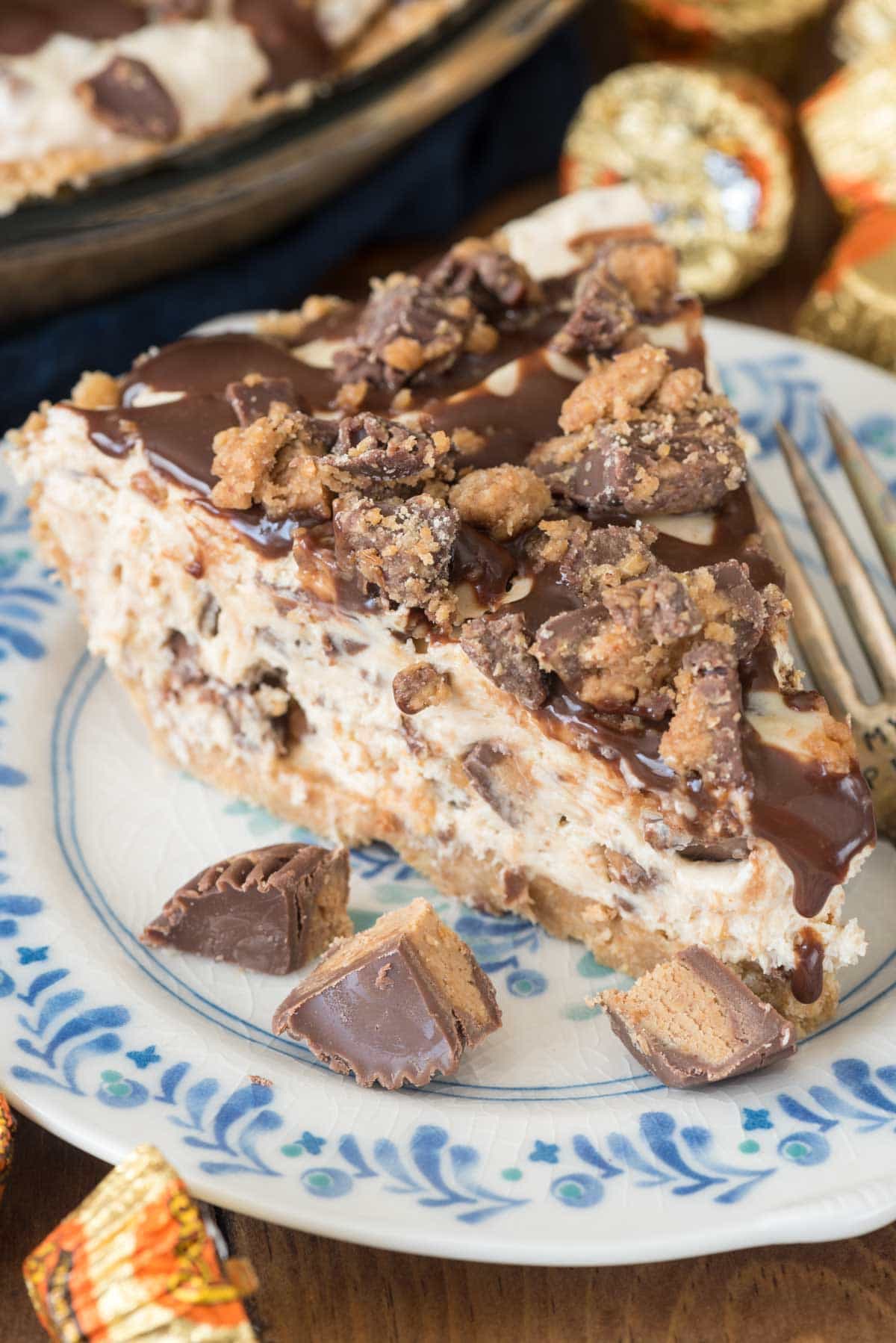 - Place filling in prepared pie crust. Sprinkle with remaining chopped peanut butter cups and drizzle with hot fudge ice cream topping. Chill at least 4 hours before cutting and serving.