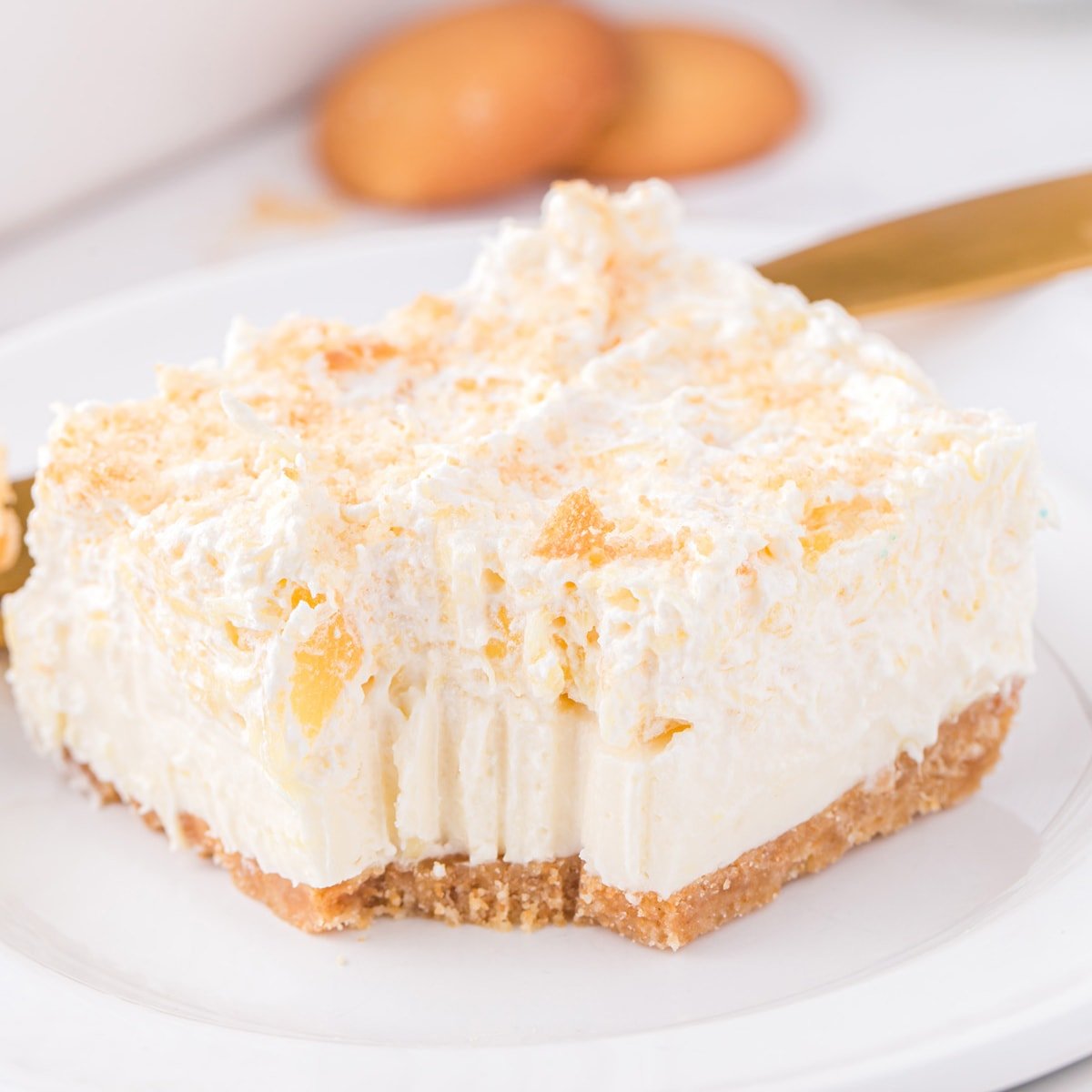 A light, fluffy, and no-bake pineapple dessert with a buttery cookie crust.