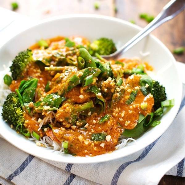 - Serve over rice, noodles, chicken, fish, vegetables, or any other way that sounds good to you! Top with crushed peanuts and scallions.