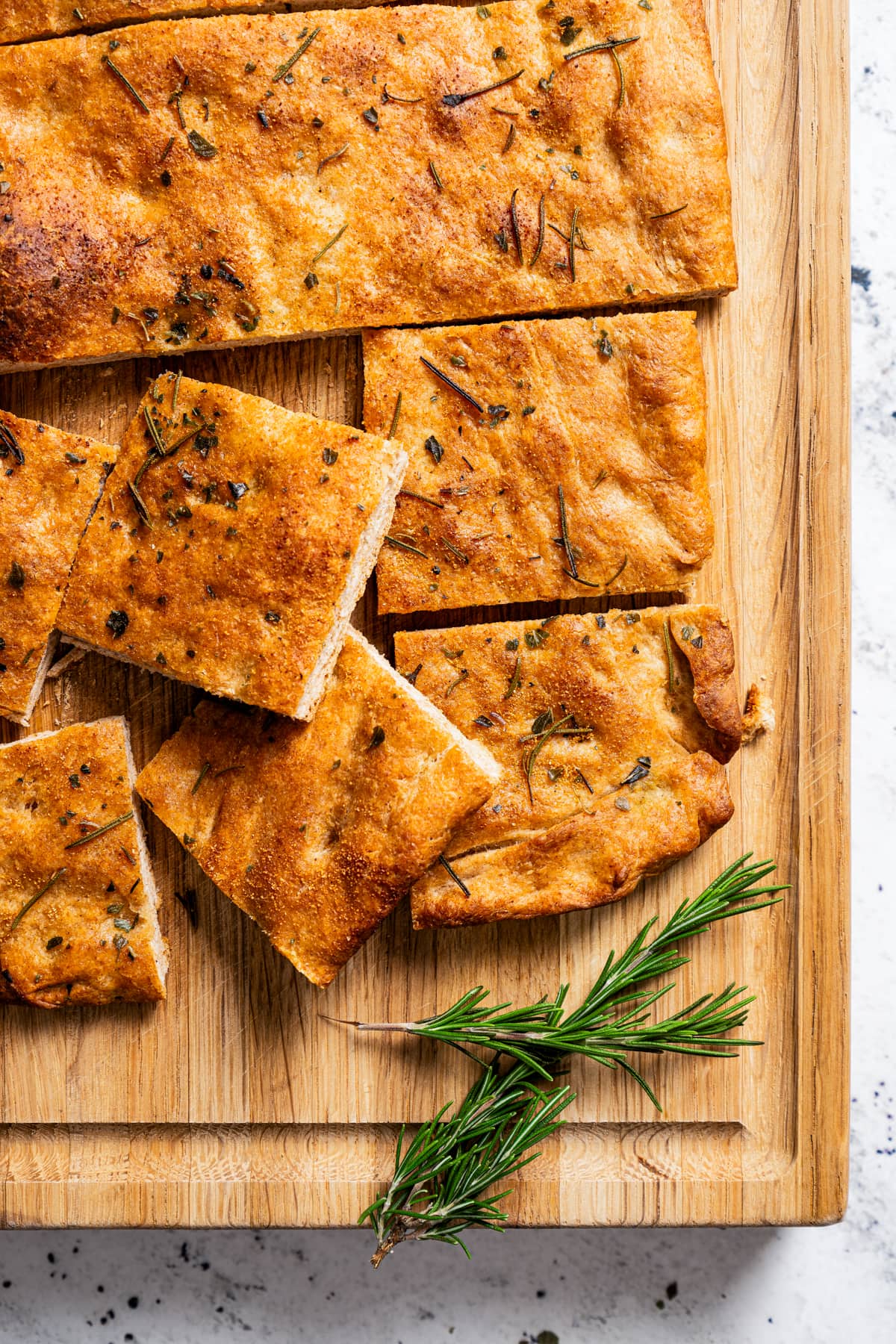 - Slice the focaccia into wedges or squares. Serve warm with your favorite dipping sauce, or use as a base for sandwiches.