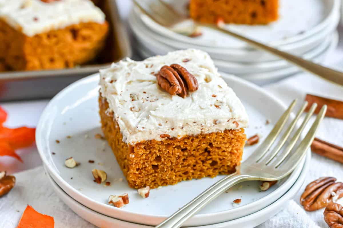 - Spread frosting over cooled pumpkin bars. Press pecan halves gently into top of bars. Cut and store in an airtight container in refrigerator. Or, freeze until ready to use.