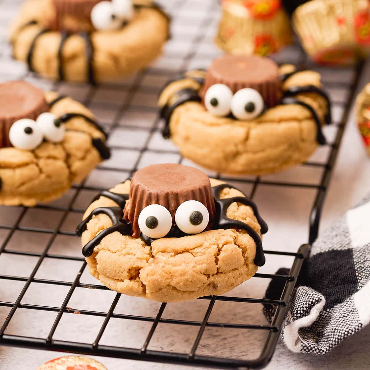 Store your cookies in an airtight container at room temperature for 3-5 days. Cookies left out in the air may harden and turn stale. You can also freeze your cookies after you add the Reese's cups and then let them cool completely. Once cooled, store them in an air-tight freezer-safe bag or container. They should last for about 3 months if properly stored. Enjoy some without the spider decorations or add the decorations once they’ve thawed after freezing. To thaw, allow the cookies to come to room temperature on the counter.