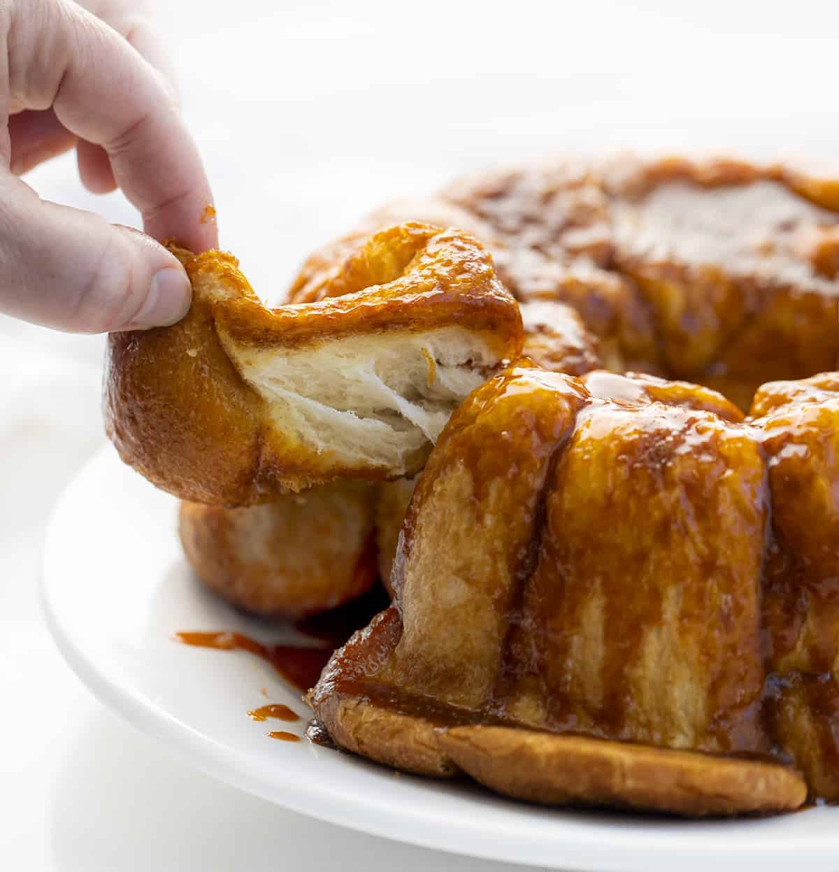 - Immediately invert the monkey bread onto a large plate. Serve and enjoy!