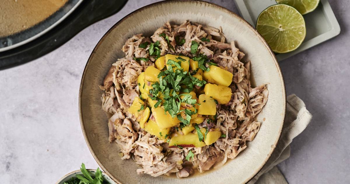 - Place the marinated chicken in a slow cooker and cook on low for 6 hours.