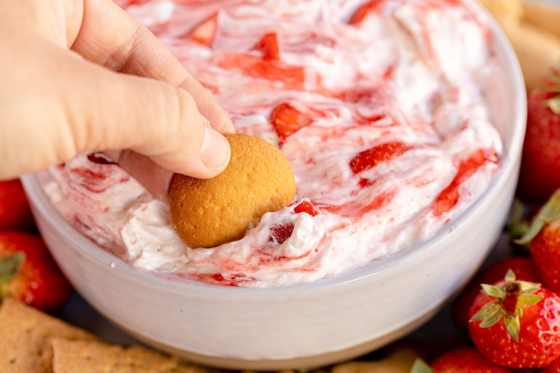 - Serve with your favorite dipping treats such as cookies, graham crackers, whole strawberries, or pretzels.