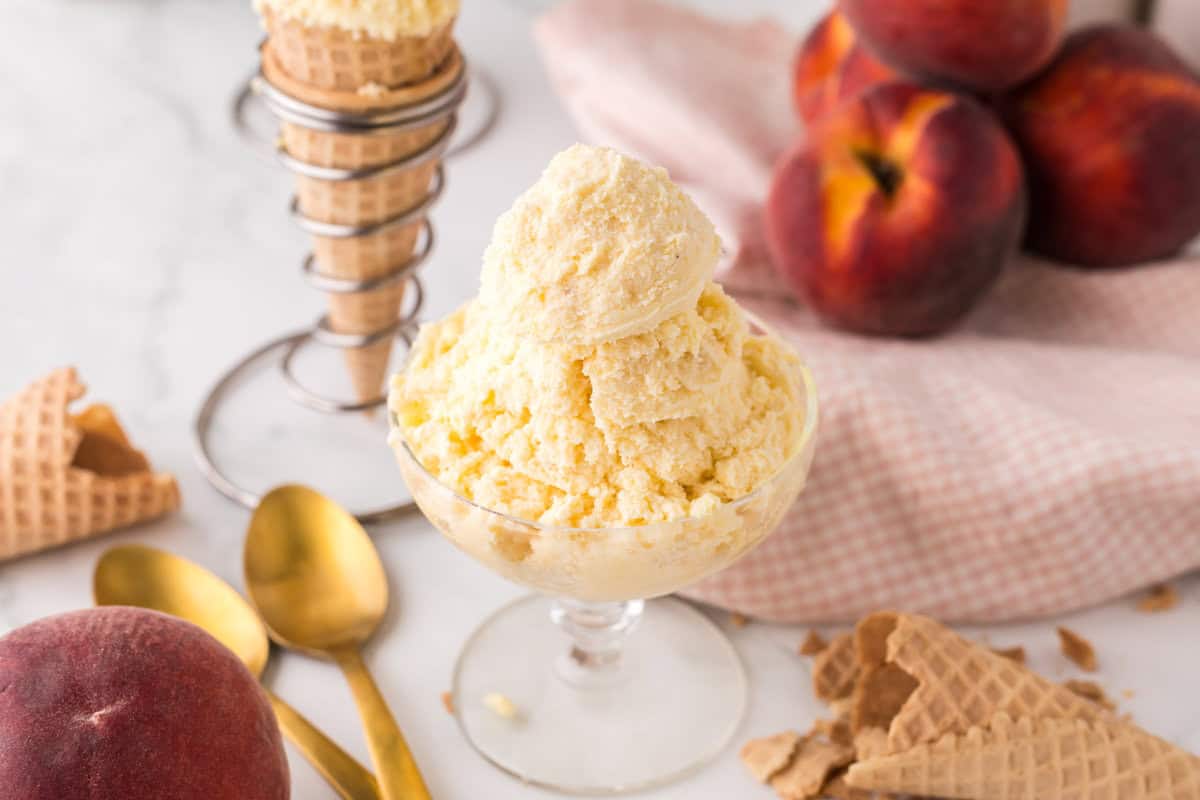 - In a medium bowl mix the peach puree, milk, sugar, heavy cream, vanilla, and salt together until the sugar dissolves.