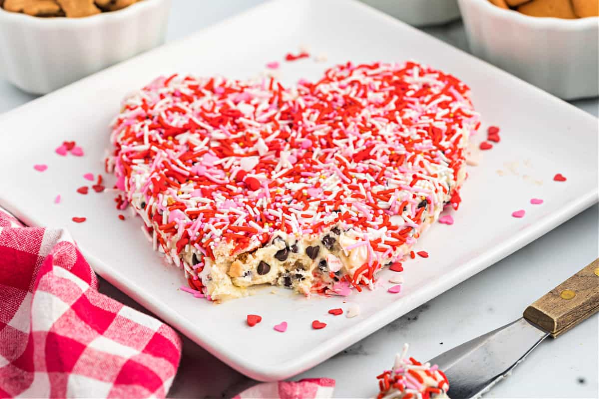 - Wrap mixture in a large piece of plastic wrap and refrigerate for 1-2 hours. If desired, shape into a heart and cover with sprinkles.