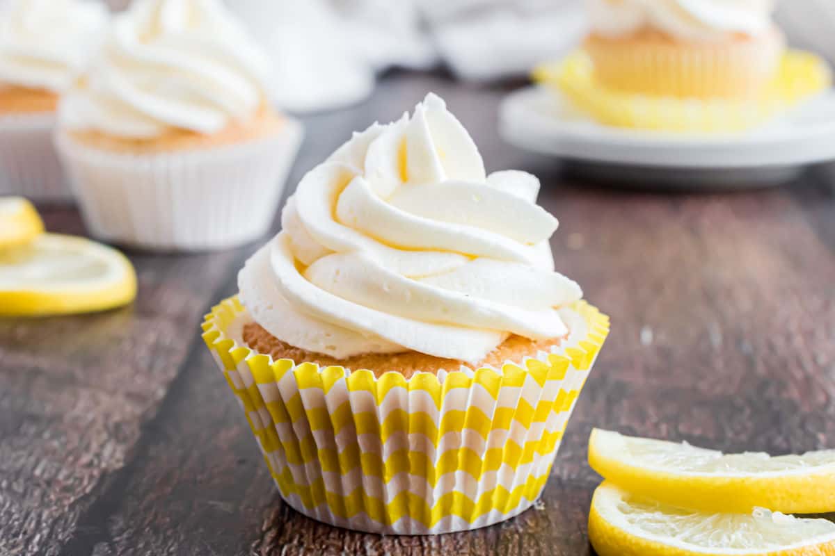 5. Frost cooled cupcakes with lemon buttercream using a piping bag. Serve and enjoy!